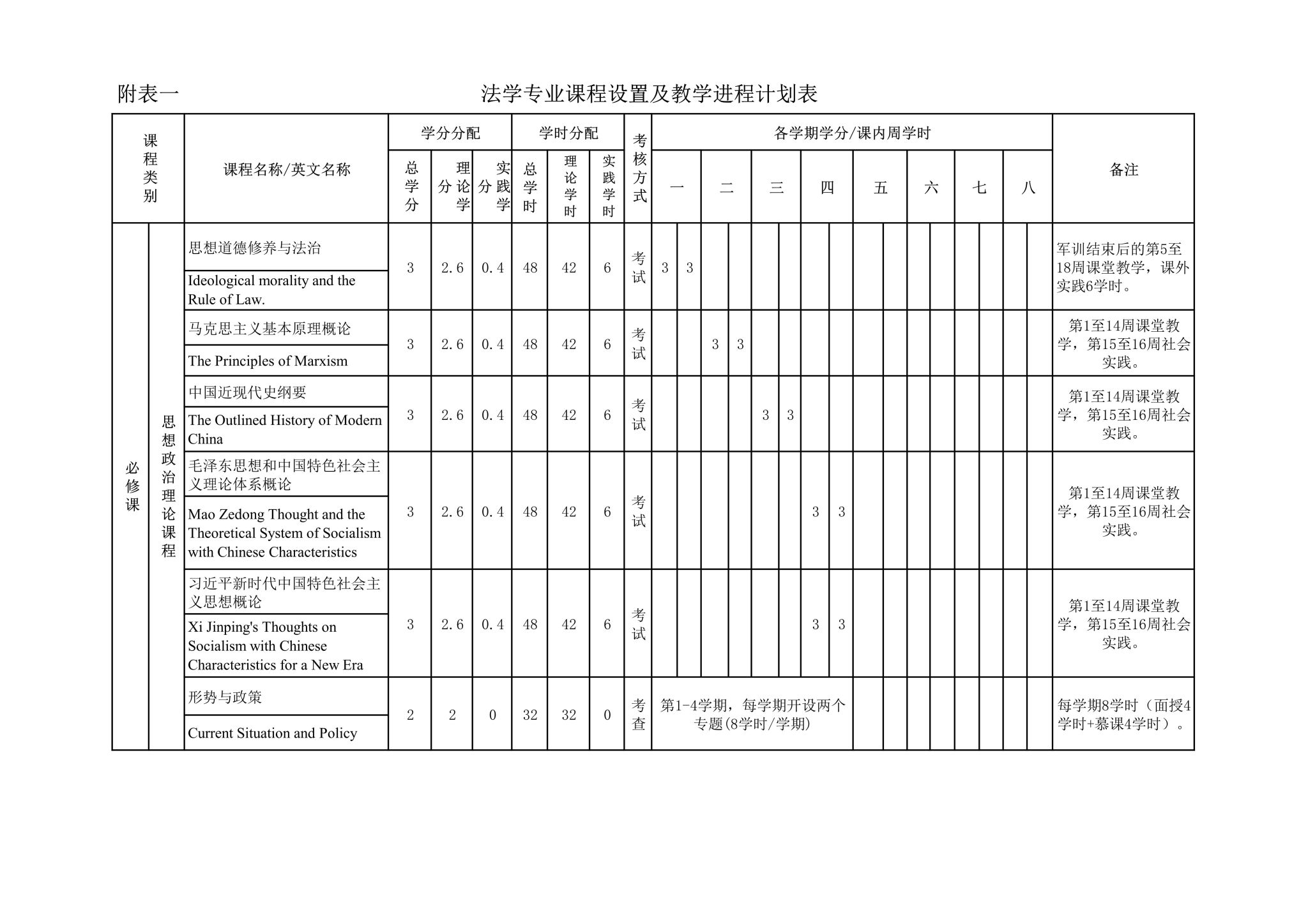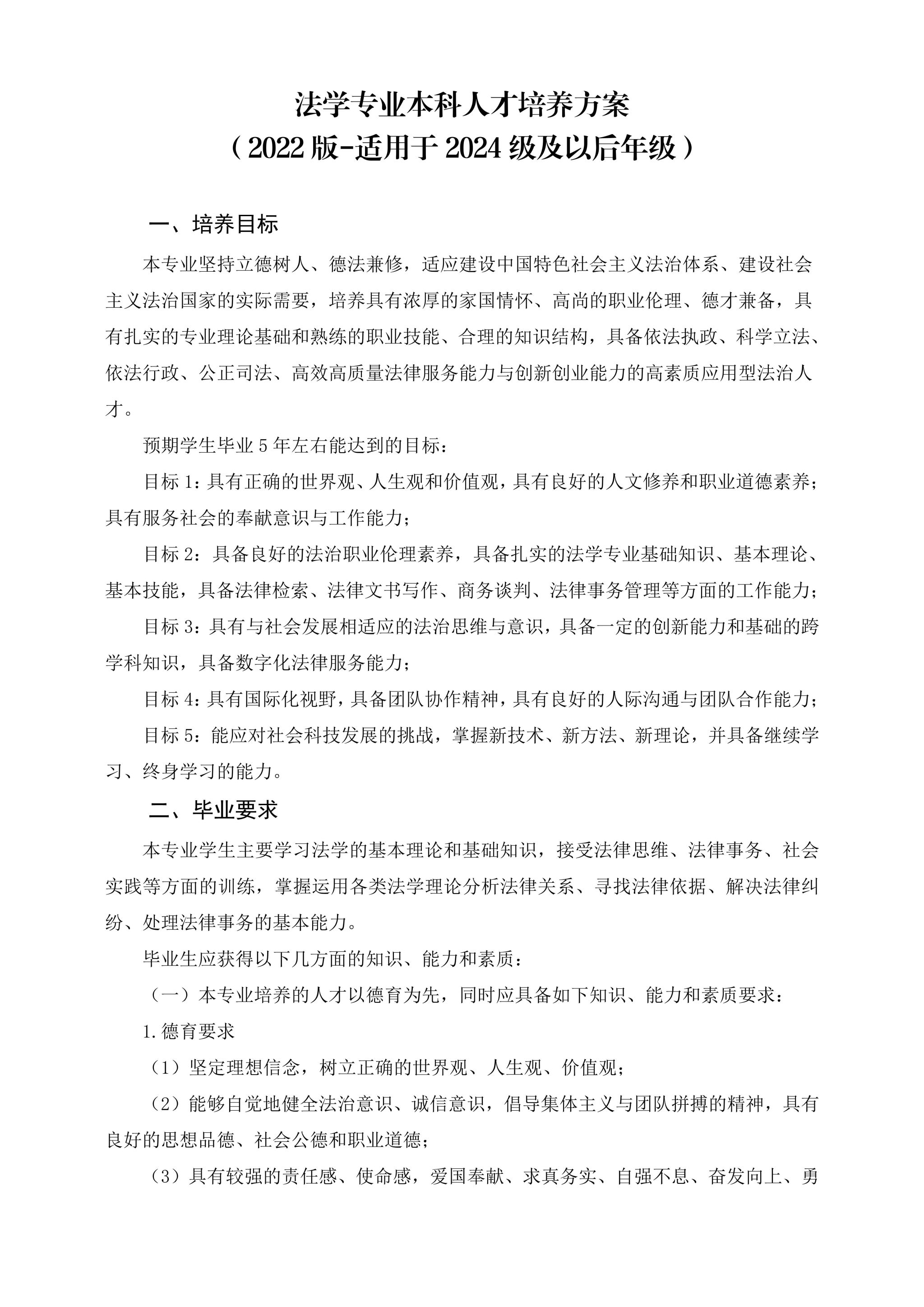 法学专业本科人才培养方案(2022版-适用于2024级及以后年级)