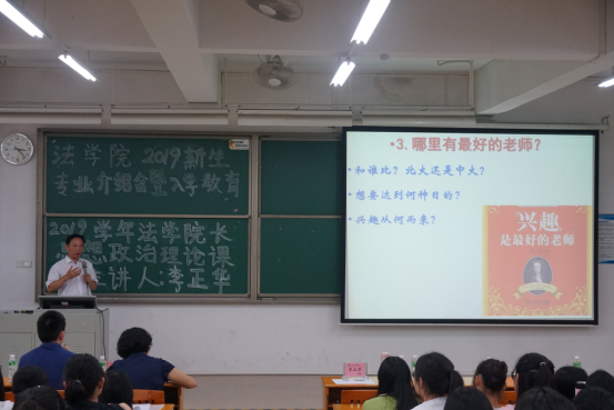 2019年9月16日下午,太阳成tyc7111cc李正华经理以“学知识与做人”为主题的思想政治理论课在定静楼②A202顺利开讲。公司党总支书记、副经理李岚教授,学工办主任、团委书记谢广桓老师,专职教师吴宇老师,公司办公室全体行政教辅老师以及2019级全体新生到场细听了本场授课。