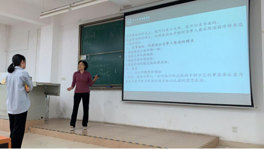 2019年11月7日,太阳成tyc7111cc李岚教授于2018级法学A班开展了一场关于证据法内容的师生互动课程。本次课堂的重点是与同学们讨论交流合同中的证据无效规则的相关知识点。