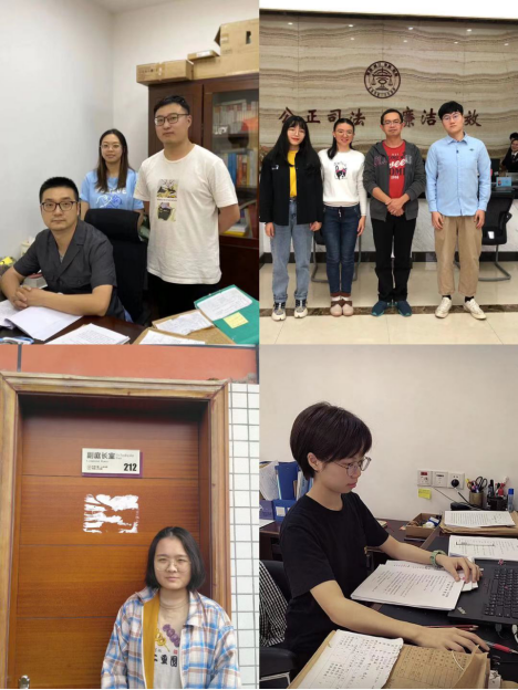还记得一开始,同学们怀着一颗好奇地心一步一步接触法庭工作,继而深入了解之后,才发现这一行业的道行之深。初来乍到,能够想象一个职场小白,上战场前的手忙脚乱,在法庭这一矛盾集中的地方更是如此。刚开始屁颠屁颠地跟着法官和书记员旁听庭审,亲身感受到了法官的威严和书记员的专业,大气都不敢喘一声。观摩数次后,忽然,法官要求同学们实际参与到庭审中来,担任书记员的角色,协助记录庭审过程。什么!?同学们先是心头一紧,再是感到恍惚,最后是连连婉拒,生怕自己的不熟练耽搁庭审的进行,进而影响当事人的诉求。然而面对法官的坚定的要求,同学们只好硬着头皮上。核查到庭人员身份、协助法官核查证据、及时地将当事人的口头化表达转化为法言法语完成笔录、协助当事人核对笔录后签字确认,头几次的庭审记录工作都带着紧张的心情,大家心里只有一个念头——快点完成记录离开审判庭!在庭审结束后走回办公室的路上,法官语重心长地说:“审案子的每一个环节都需要细致,遵程序,这离不开庭审过程的完整记录,法庭作为矛盾集中的地方,审案子不仅仅是解决纠纷,更是在审当事人的切身利益,我们这里解决一桩纠纷,社会就多一分稳定,我们一定要认真对待,容不得半点马虎。”同学们才恍然大悟,自那以后,同学们养成了在下班时间相互交流经验的习惯,将自身的感悟都分享出来,经验教训一起吸取,成长进步一起完成。逐渐地,同学们对法庭的工作流程和庭审工作愈发熟悉起来,各部门间默契的搭档配合,使得实习生们快速地融入到了法庭这个大家庭里面。