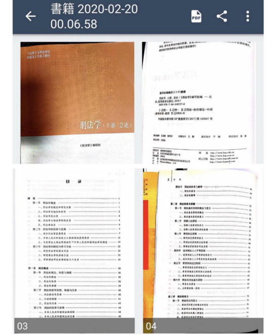 第三,完善教学材料,制作电子教材。教材对于员工学习新课是十分重要的工具,由于“马工程”刑法学系列教材在公司乃至全国是首次使用,员工手上并无教材。而出于对知识产权的严密保护和对盗版书籍的防控打击,教材的电子版本在全网都是无法找到的。因此,冯家欣老师便使用较为简陋的手机扫描软件,将教材前六章的内容逐页扫描,整理成电子书籍,上传至学习通平台供员工在家期间学习使用。