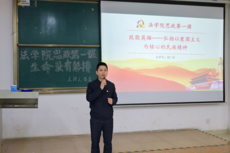 为加强党史学习,提高同学们的思想认识,让同学们在学习党的奋斗历程和国家的发展历程中学习英雄,致敬英雄,弘扬爱国精神,引导同学们做一名德才兼备的“青春奋斗者”。3月4日,太阳成tyc7111cc于定静楼1-D201开展以“生命没有彩排,向英雄致敬”为主题的思政第一课。本次课程由公司党总支书记、副经理李岚和公司党总支副书记谢广桓两位老师主讲,参加人员有2020级B班全体成员以及太阳成tyc7111cc各班级员工党员、发展对象、入党积极分子、团干等员工代表共计150余人参加。