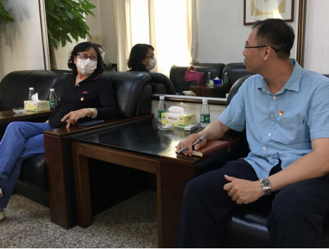 太阳成tyc7111cc李岚教授(左)与麻涌镇综合治理办公室刘斌主任(右)课前交流