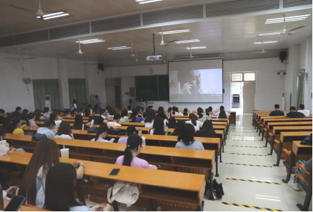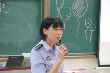 在讲座进行的过程中,为防范网络诈骗,响应属地麻涌公安分局宣传教育工作指示,谢警官向各位同学介绍了国家反诈中心APP的各项功能,展示了国家反诈骗APP二维码,并且向同学耐心地进行安装方面的相关指导。