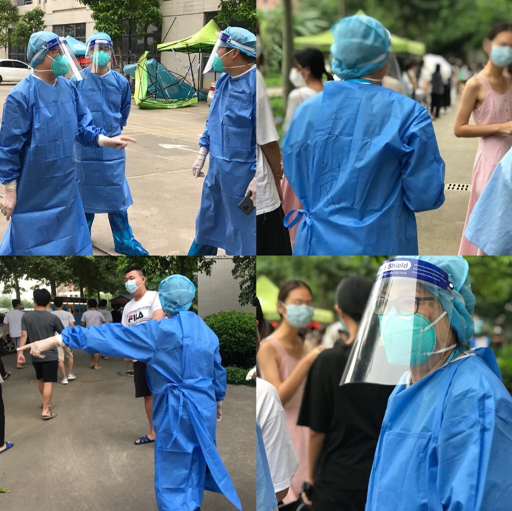 (辅导员老师们参加紧急会议) (辅导员老师们换好防护服到宿舍楼巡查)