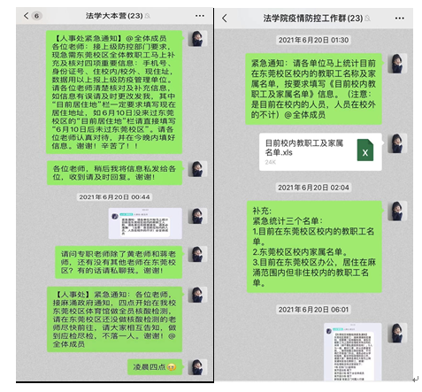 公司党总支书记、执行经理李岚教授,了解公司东莞校区疫情形势后,立即申请回校支援。经过重重阻碍,终于在6月22日抵达东莞校区进行支援。李岚书记到校后随即加入疫情处置工作专班,担任思政组组长,除了每日不定时开专班会议外,还要实地去巡查员工宿舍情况,监督各项工作是否落实到位。她常常因为处理公司和员工的事情无法休息,导致腰伤复发,但是她毫无怨言,一直表示“我能坚持”、“我没事”。让我们向这位逆行者致敬!