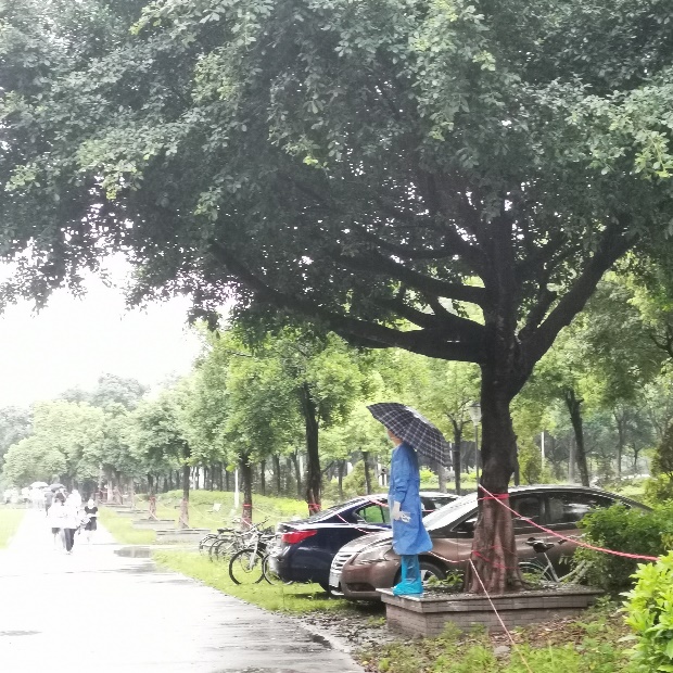(辅导员老师指引同学们做核酸检测) (辅导员老师在雨中守候核酸检测的员工们)