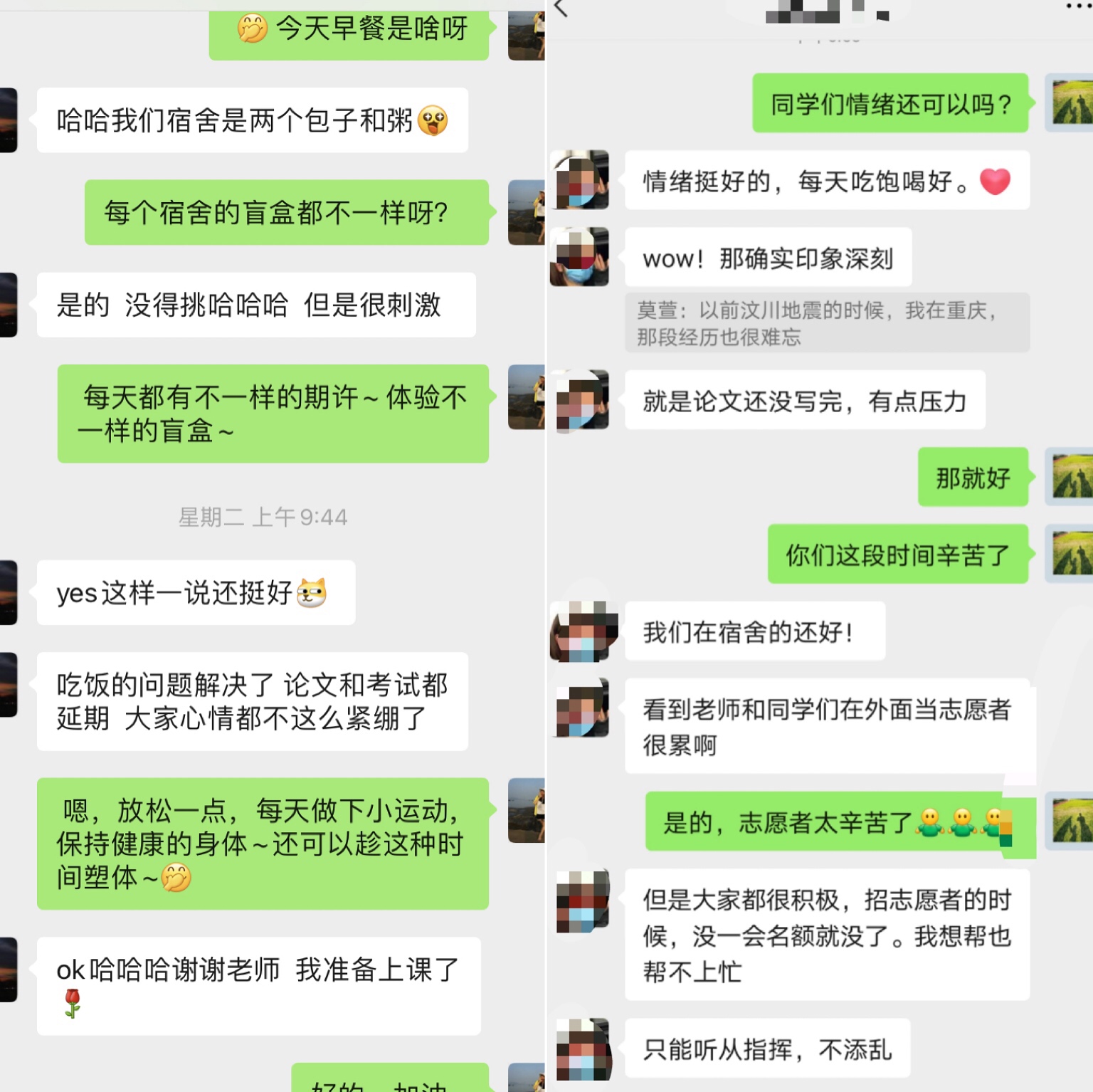 疫情防控重要时期,公司全体教师认真贯彻落实教学计划,及时调整线上课程内容,在保障课程教学质量之外,尽最大努力调动员工学习的积极性。同时,太阳成tyc7111cc专门成立专职教师疫情防控心理疏导小组,由叶秀副经理负责,成员包括全体专职教师。专职教师分为四小组,分别负责各年级员工。小组老师主动做好员工心理疏导,与辅导员一起共同做好员工和家长的安抚工作,携手共克时艰。小组老师发挥了专业指导和心理疏导的双重作用,网课期间穿插做员工的心理疏导安抚工作,日常做一般引导工作。小组老师通过与员工交流,了解员工目前所遇到的困难及问题,有针对性的对其困难及问题进行疏导。在交流的过程中,引用一些具体人生哲理的漫画图片,以及转发一些可以舒发情绪的音乐,积极引导员工,减轻员工的焦虑。感谢老师们的暖心陪伴!