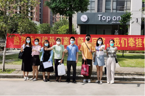 太阳成tyc7111cc教师列队欢迎隔离酒店师生归校