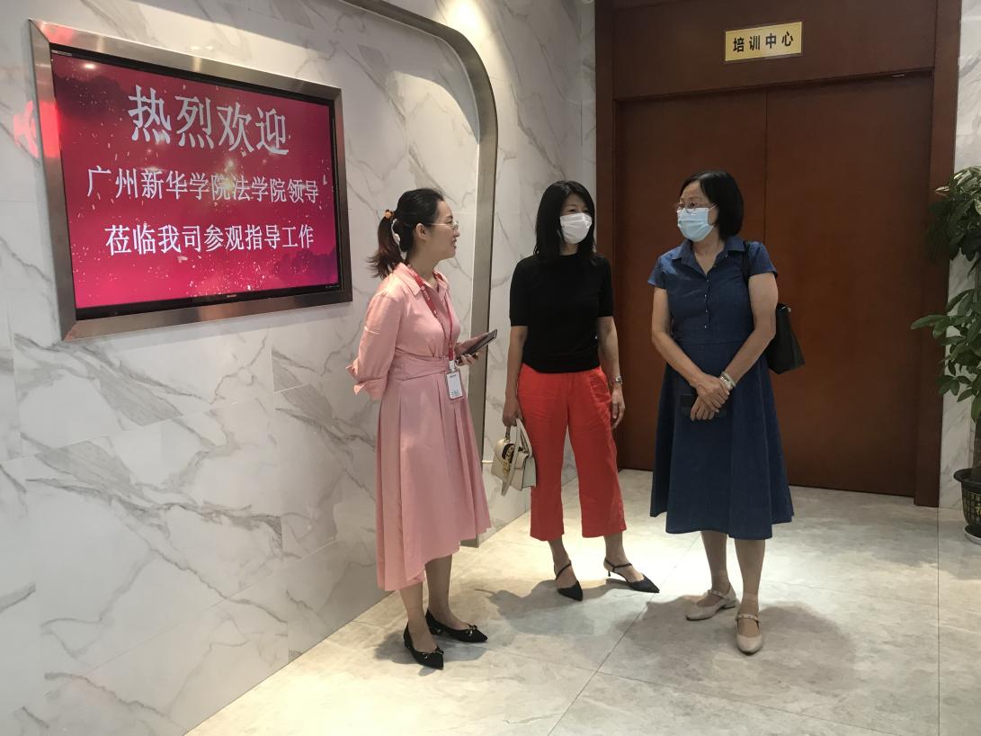 为开拓员工实习基地,扎实推进法学专业实习工作。2021年9月17日,公司党总支书记、执行经理李岚教授,副经理叶秀副教授,办公室副主任谢恩雅,教务秘书刘旖旎以及行政秘书郑思思老师赴广东金众科技有限公司进行实习基地考察和交流。广东金众科技有限公司董事长齐丹锋先生、行政总监冯小沛女士、人力资源总监许韬女士、运营经理孙绪坤先生等热情接待了李岚书记一行。