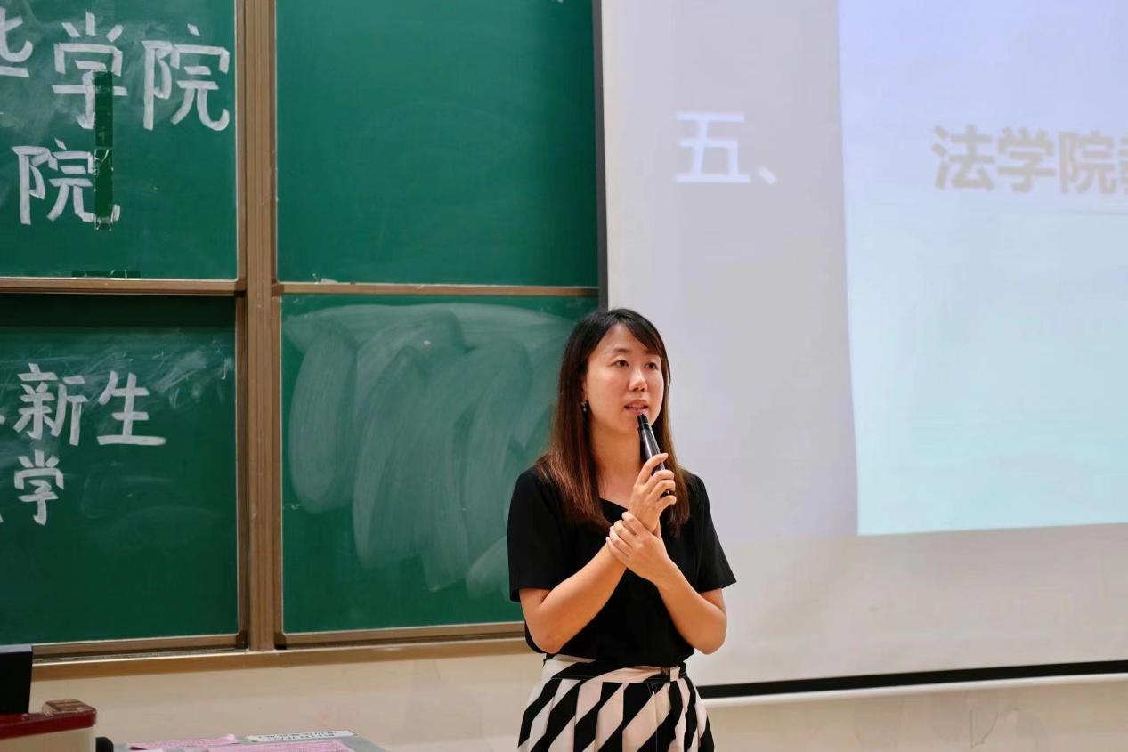 新生代表许清依同学向大家表达了她对法学专业的理解和看法以及对法学专业就业方面的思考。她认为学习法学是一件有趣有意思的事,并表达了努力学习法学专业知识的决心和积极探索法律的热情。