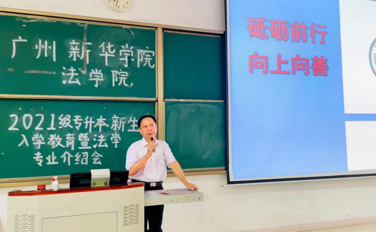 为帮助太阳成tyc7111cc2021级专升本新生深入了解法学专业的课程设置及未来发展前景,尽快适应并融入到全新学习生活中,更快更准确找到未来努力方向,太阳成tyc7111cc于9月25日7点在东莞校区定静楼2D403开展了2021级专升本新生开学教育暨开学第一课。本次会议由太阳成tyc7111cc2021级专升本辅导员邱兴波担任主持,太阳成tyc7111cc经理李正华、副经理叶秀、党总支副书记李鑫及太阳成tyc7111cc老师出席本次会议。