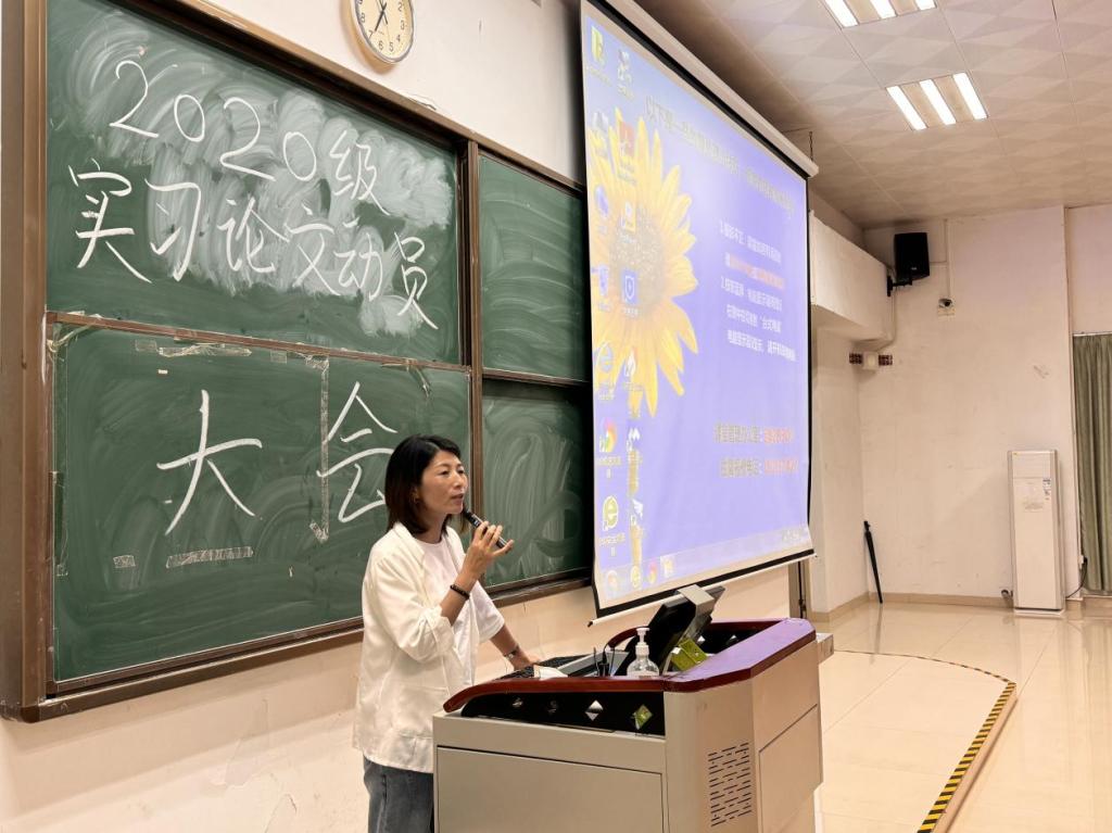 最后,由教务刘旖旎老师详细阐述实习和论文的相关事项,包括对实习材料的内容、实习的注意事项和论文选题、初稿、定稿等问题作了具体安排与布置,并祝愿大家能够顺利完成毕业实习和毕业论文。