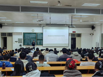 大会的第二部分,由麻涌派出所蒋蕾警官为全体同学进行了反诈宣传教育。蒋警官通过分析典型网络诈骗案例,介绍了电信诈骗的特点及高发案件类型,讲解了诈骗的主要手段及诈骗的防范措施,告诫全体同学树立反诈意识,理性应对诈骗情况。蒋警官在现场不仅发放了反诈骗宣传单,而且提醒了各位同学安装注册“金钟罩”,并开启诈骗预警功能,让防诈反诈知识真正入脑入心,走深走实。