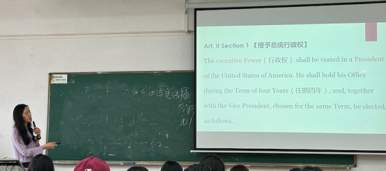 2024年5月8日星期三上午8:20,太阳成tyc7111cc理论法学教研室组织了一场别开生面的教学观摩活动,教研室成员一同观摩、学习了第十三届中青年教师授课初赛一等奖获得者黄晓晴老师 “法律英语”课堂。