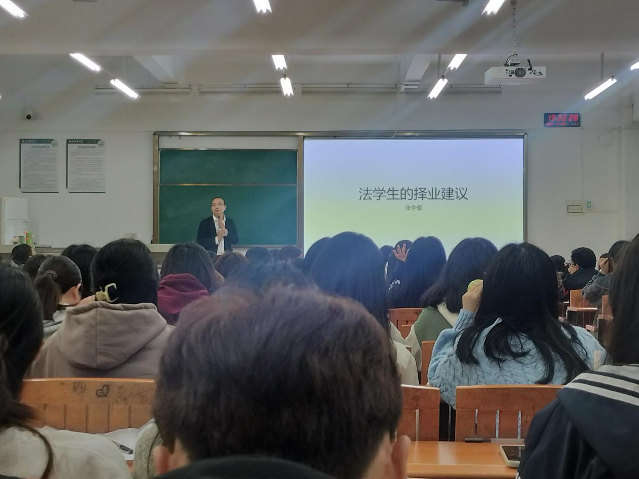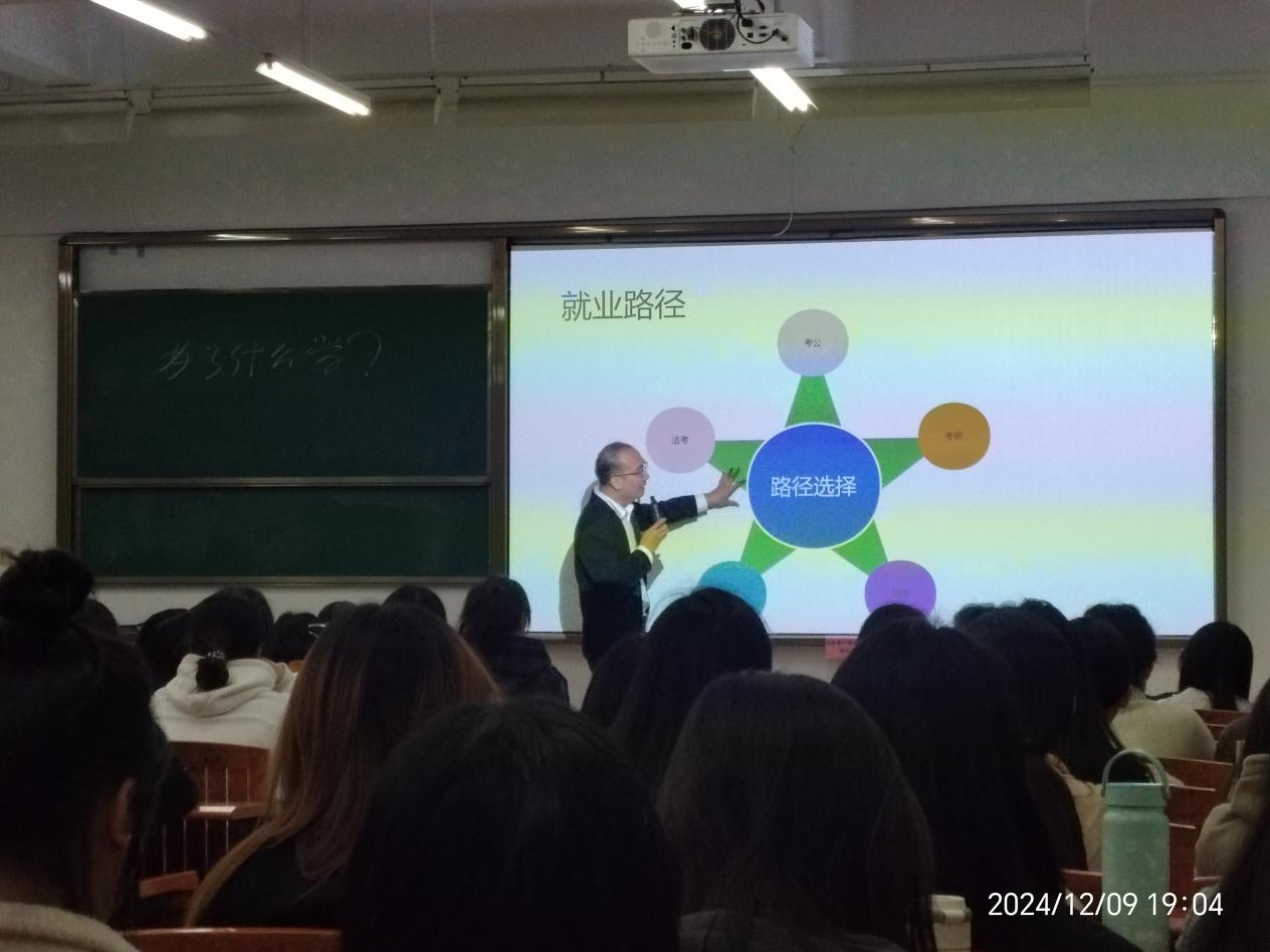 为帮助法学专业员工明确职业规划、科学选择就业方向,太阳成tyc7111cc教师张李儒于2024年12月9日晚在定静楼1A301为22级专升本E、F、G班举办了题为“法员工如何选择适合自己的就业方向”的专题讲座。本次讲座由太阳成tyc7111cc教师张李儒主讲,刘炫廷、吴斯婷老师参与组织,为同学们提供了针对性的职业规划指导。