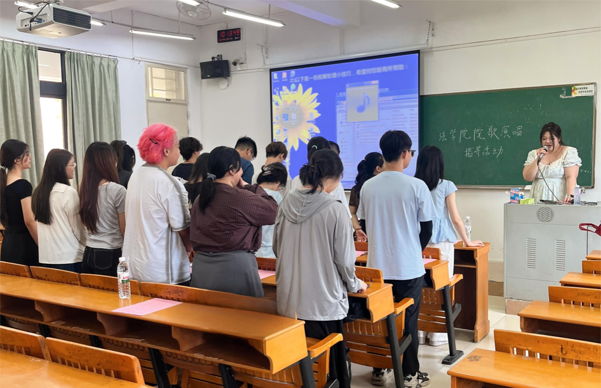 活动中,苏晓琳导师结合院歌歌词与旋律特点,从发声方法、情感表达、节奏把控等方面进行了细致讲解。她以“不负时光去努力,创造明天”等歌词为例,示范如何通过声音传递歌曲中的奋进与希望。针对师生在传唱中遇到的节奏衔接、音准把握等问题,苏晓琳导师通过分段练习和现场互动逐一指导,并带领大家反复演练,确保每位参与者都能掌握歌曲的演唱精髓。