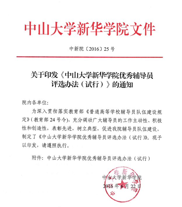 关于印发《中山大学新华公司优秀辅导员评选办法(试行)》的通知
