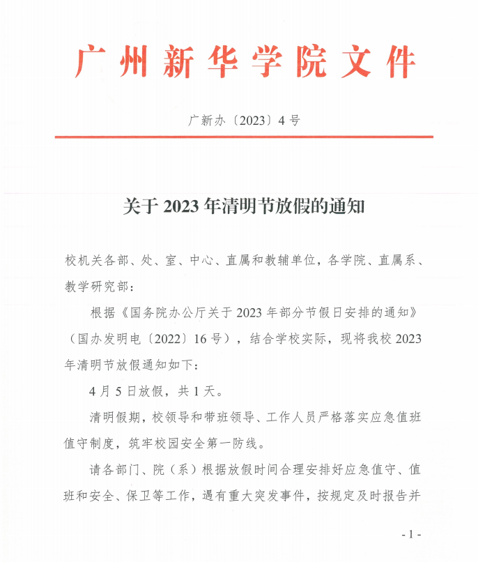 关于2023年清明节放假的通知