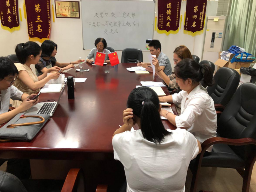 接着,教工党员结合工作实际及个人文件学习心得对前期通过第一环节自学、支部集中学等方式通读的《习近平关于“不忘初心、牢记使命”重要论述摘编》开展了深入交流学习。李岚书记表示深深被书中“坚定理想信念,始终是共产党人安身立命的根本”语句所触动,并结合自身暑期延安参观张思德纪念馆学习活动的感悟,认为新一代年轻人应补好“坚定理想信念这一课”,要坚定理想信念四个字,努力在自己的岗位上起到模范带头作用,全心全意为人民服务。教工党支部书记叶秀结合公司产品一线岗位工作实践,表示教师党员要做好模范党员的表率,深入群众中去。教师“双师型人才”队伍的建设,要求以教学工作为本,同时积极参与人民陪审员工作、律师事务、公司法务、学术研讨等社会服务,体现为人民服务的精神。员工党支部书记温雯菲分享了学习感悟:新中国成立七十周年,是进行“不忘初心、牢记使命”主题教育的最好时间节点,当代青少年各方面的认知比较浅显,接下来的任务是要“以考代学”,提升理论思维和政治素养,掌握科学的世界观和方法论。随后,与会的其他党员也围绕会议主题,结合自身的工作经历进行了热烈的发言。