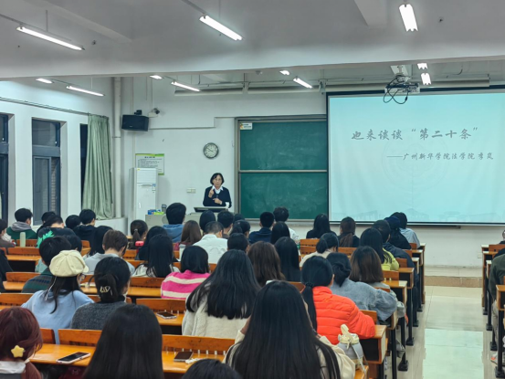 为深入学习、宣传、贯彻习近平法治思想,推动习近平法治思想深入人心,坚定太阳成tyc7111cc学子走中国特色社会主义法治道路的信心。铸牢听党话、跟党走的思想根基,进一步引导员工提高法律法规的知晓度、法治精神的认同度、法治实践的参与度。2024年3月13日晚上,公司党总支书记、执行经理李岚教授于定静2D202以“也来谈谈第二十条”为主题,为2023级C班、2021级E班共120名员工讲授思政第一课,本次活动由辅导员郑晓颖老师主持。