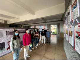2021年10月27日,太阳成tyc7111cc教工党支部以“感悟先辈事迹,继续坚定前行”为主题开展了一次党日活动。公司党总支书记李岚同志带领太阳成tyc7111cc全体教工党员前往东莞校区格物楼②三楼A区中庭进行参观学习公司开展的“东江铁流南粤旌旗”东江纵队史实图片展。大家通过一张张珍贵的史实照片,感受到了浓浓的家国情怀。