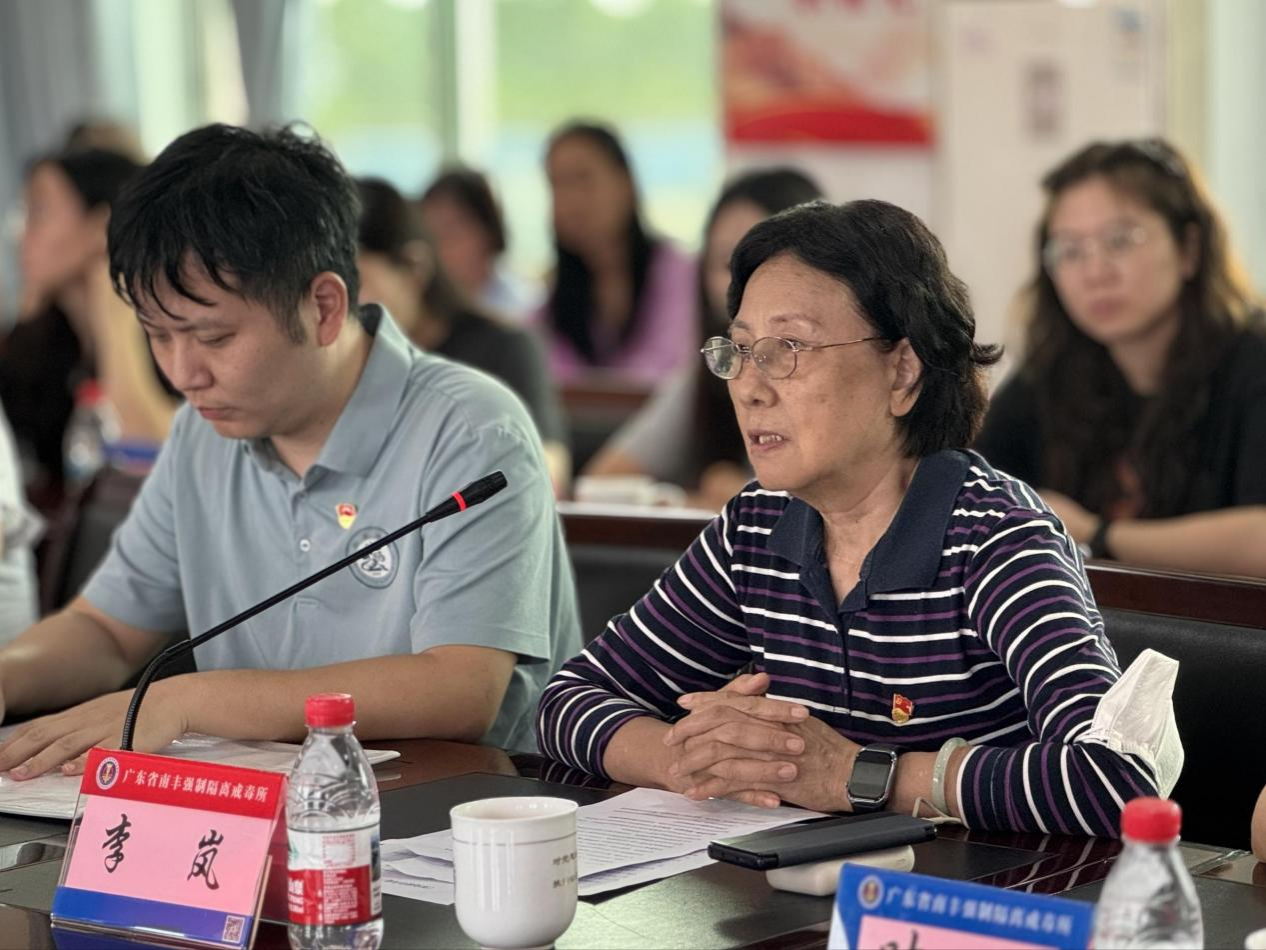 参观结束后,双方在广东省南丰强制隔离戒毒所一分所四楼会议室举行座谈交流。会议由一分所三支部书记谢水平同志主持,广东省南丰强制隔离戒毒所一分所所长邬志礼同志致欢迎词并介绍分所基本情况。公司党总支书记李岚同志就公司发展概况及开展党建共建的初衷作了发言。接着,一分所三支部政工干事唐耀华同志围绕“深化联学共建,筑牢作风防线”主题进行了专题讲解,进一步强化了双方在思想共建、作风共育方面的共识。
