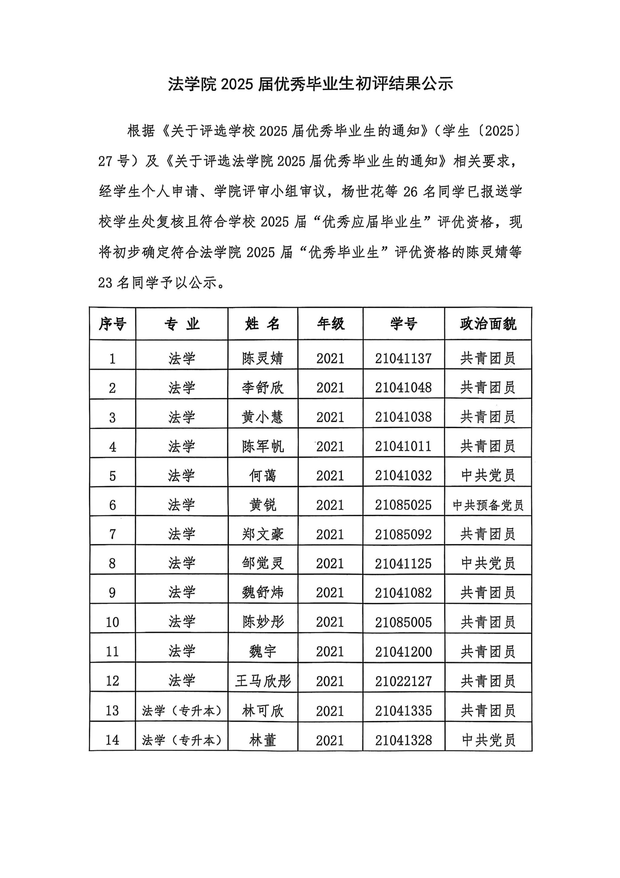太阳成tyc7111cc2025届优秀毕业生初评结果公示