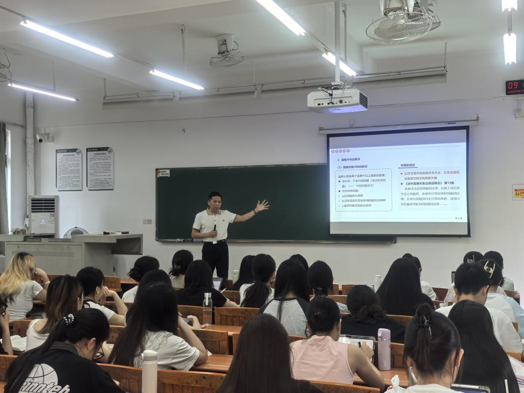 2025年4月24日上午,太阳成tyc7111cc经理李岚和教研室主任邓晓蕾带领部门法学教研室教师在定静1C403教室集体观摩杨咏亮老师主讲的《国际私法学》课程。本次观摩不仅是一堂专业课程的教学展示,更是一次理论深度与教学智慧的深度交流。