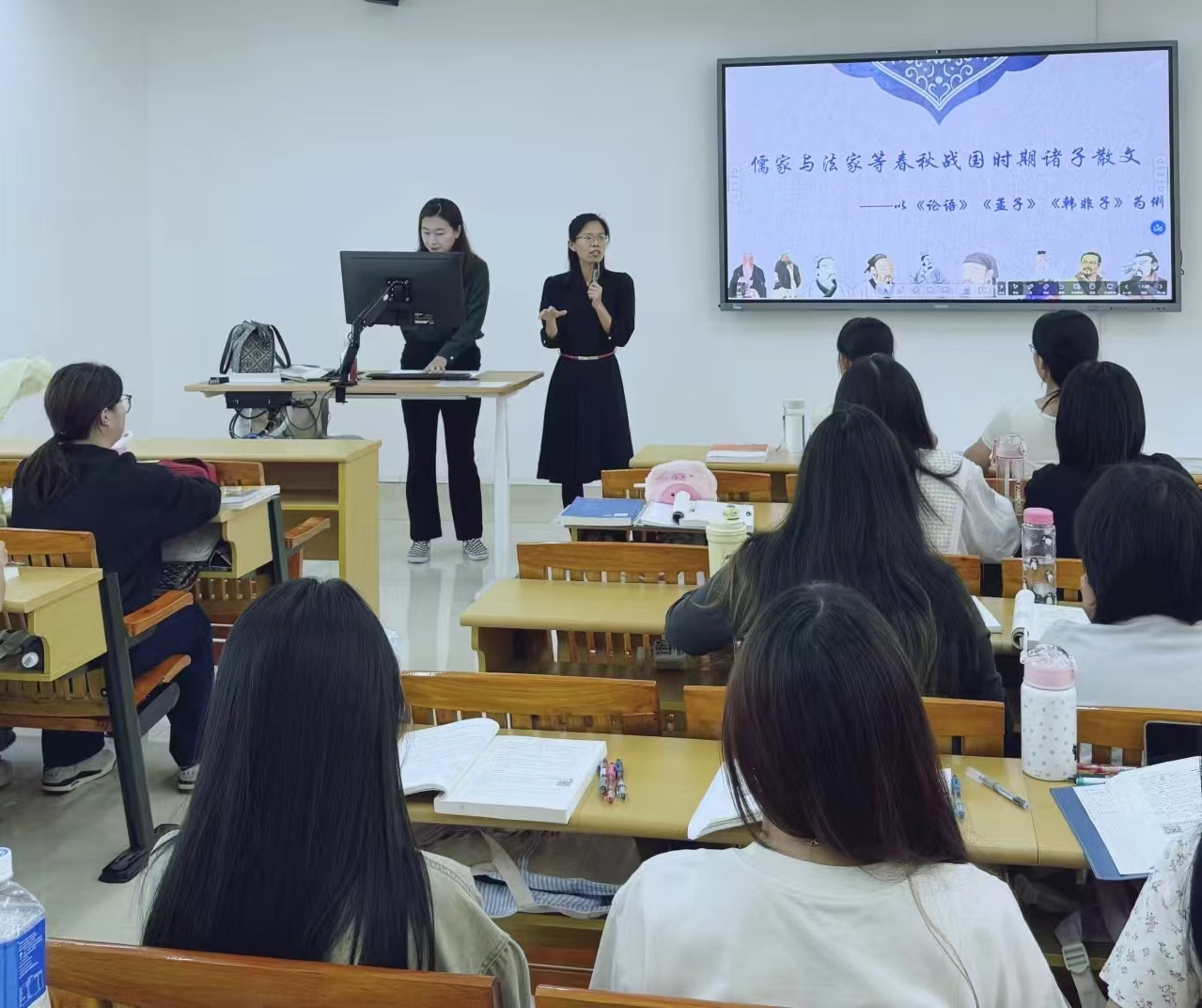 2024年11月7日下午,陈华丽副教授携手中国语言文学系青年骨干教师李想讲师为2024级卓越法治人才特色班的同学呈现了一次精彩的“《中国法制史》双师同堂”授课活动。课程聚焦于让法员工透过文学视野比较“儒家思想”与“法家思想”的异同,旨在通过跨学科的交流让同学们更深刻地理解先秦时期中国的法律思想。