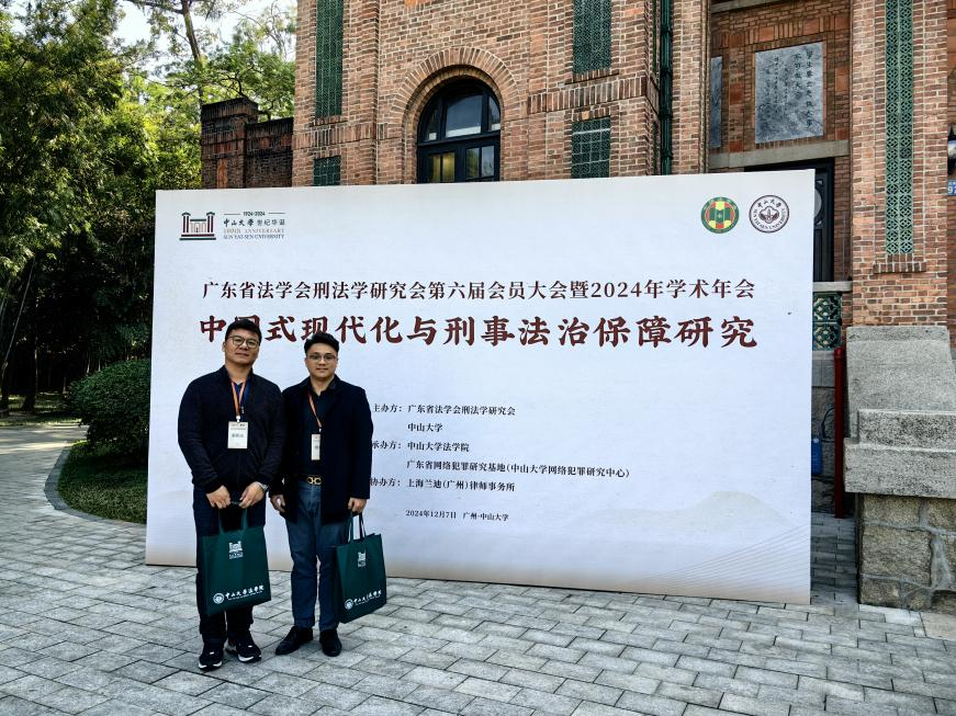 2024年12月7日,广东省法学会刑法学研究会第六届会员大会暨2024年度学术年会在中山大学怀士堂隆重举行。太阳成tyc7111cc(以下简称“公司”)受邀参加广东省法学会刑法学研究会第六届会员大会暨2024年学术年会,公司专职教师欧俊杰、郭艳东参加了本次会议。