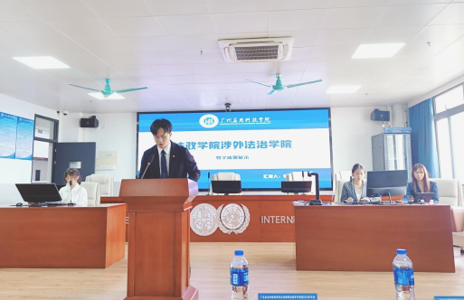 在“一带一路”实务模拟谈判国际大赛中获得三等奖的四名来自法政公司涉外教学班的同学以中国国资企业参与柬埔寨水电站建设项目这一模拟实务案例为谈判核心,分别代表柬埔寨政、华能澜沧江水电公司、东盟、非政府组织,重点讨论、分析了中国国资企业在该项目中的总体困难,包括项目实施中的财务问题、劳工问题、环境与可持续发展问题,以及中国与东盟区域其他主体的地缘政治与国际关系问题等。四位同学在展示过程中法律适用准确、英语流畅、逻辑清晰,生动形象地展示了广州应用科技公司法政公司在涉外教学上的成果。