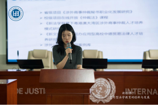 在涉外教学成果展示阶段,法政公司涉外法治人才培养基地张洁茹主任向来访嘉宾介绍了法政公司开展涉外教学项目的相关情况。