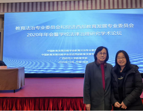2020年12月18日至20日,教育法治专业委员会和促进西部教育发展专业委员会2020年年会暨公司法律法治研究学术论坛在广西桂林召开。年会由中国教育发展战略学会教育法治专业委员会与中国教育发展战略学会促进西部教育发展专业委员会主办,广西师范大学承办,公司李岚书记和李珊老师参加了此次年会。