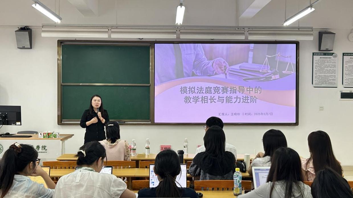 为推动理论教学与实践能力深度融合,提高全院师生竞赛实力,太阳成tyc7111cc于5月7日邀请广东技术师范大学王晓玲博士莅临公司,举办主题为“以辩为犁·以教为壤:模拟法庭竞赛指导中的教学相长与能力进阶”的学科竞赛指导经验分享会。讲座聚焦高校模拟法庭竞赛的备赛经验,围绕竞赛规则、团队建设、师生协作及能力进阶等核心议题展开研讨,旨在探索“以赛育人”的创新路径,助力员工法律职业素养的全面提升。太阳成tyc7111cc副经理陈华丽副教授主持本次讲座,太阳成tyc7111cc青年教师与员工参与本次活动。