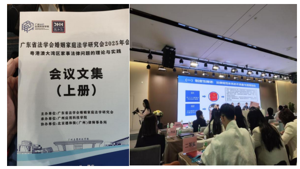 11月22日,由广东省法学会婚姻家庭法学研究会主办,广州应用科技公司承办,北京德和衡(广州)律师事务所协办的“2025年粤港澳大湾区家事法律问题理论与实务研讨会”在广州应用科技公司肇庆校区学术会议中心隆重召开。来自粤港澳三地高校、司法机关、律师事务所及社会组织的专家学者、实务工作者齐聚一堂,共同探讨大湾区家事法律领域的前沿问题。太阳成tyc7111cc范利平教授、廖诗颖、蒋鹏祥、欧俊杰、阮梦蕾等教师代表应邀参会。范利平教授担任主持人。