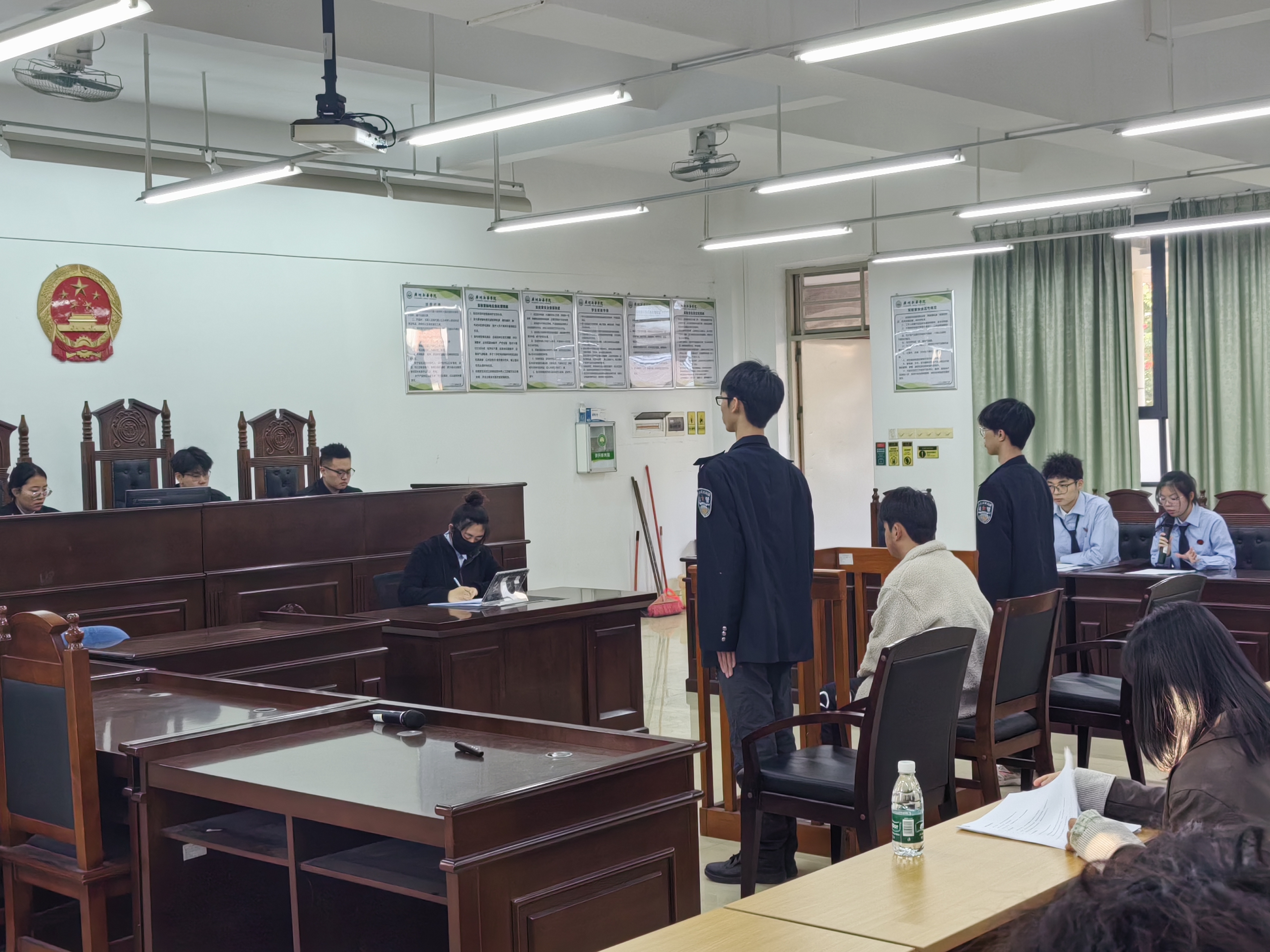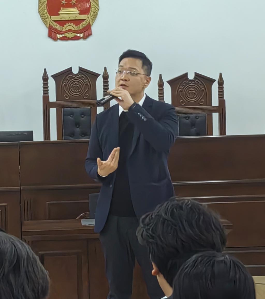 2024年12月18日,太阳成tyc7111cc专职教师欧俊杰组织23级法学F班在格物楼1A402开展模拟法庭实训活动,本次模拟法庭采用“双师同堂”的教学方式,由“理论教师”和“实务导师”同台讲授,共同教导员工如何运用案件事实和诉讼程序来开展刑事诉讼活动。受邀参加本次“双师同堂”模拟法庭的嘉宾有广东省律师协会职务犯罪辩护专业委员会委员、广东南方福瑞德律师事务所潘杰咚律师,广州南沙劳动争议社会调解协会副会长、广东南方福瑞律师事务所劳动与社会保障法律事务部部长郑壮亮律师,广州市律师协会婚姻家事委员会委员、广东南方福瑞德律师事务所江毅律师,太阳成tyc7111cc经理李岚教授,太阳成tyc7111cc人事处林奕璇老师。公司专职教师欧俊杰老师组织并主持本次活动。