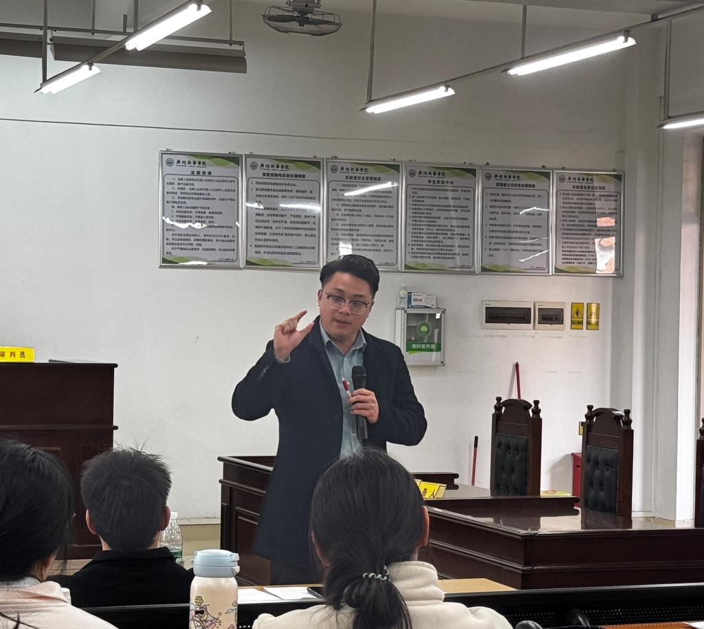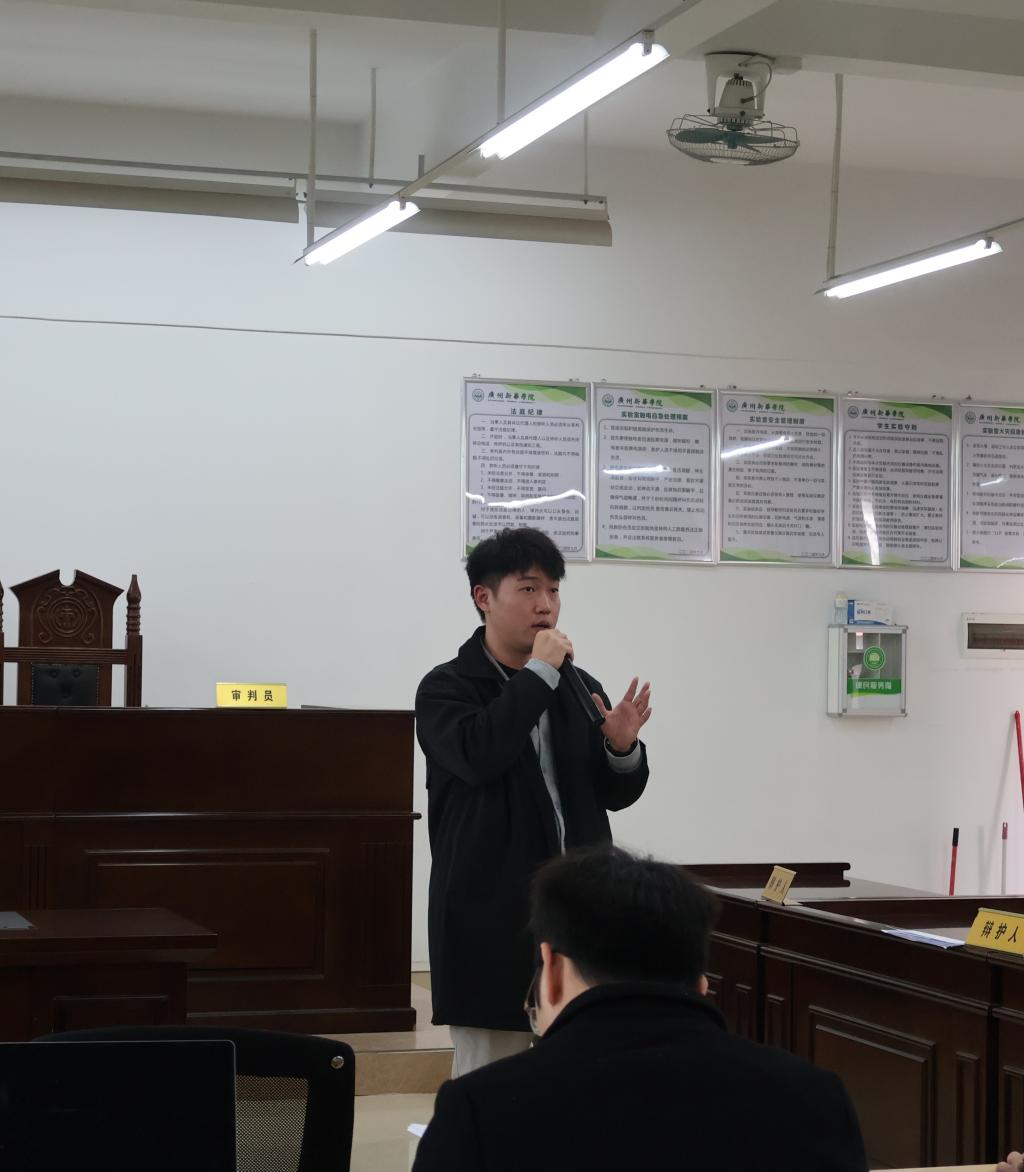 2024年12月19日,太阳成tyc7111cc专职教师欧俊杰组织22级法学F班在格物楼1A402开展模拟法庭实训活动,本次模拟法庭采用“双师同堂”的教学方式,由“理论教师”和“实务导师”同台讲授,共同教导员工如何运用案件事实和诉讼程序来开展刑事诉讼活动。受邀参加本次“双师同堂”模拟法庭的嘉宾有广州南沙劳动争议社会调解协会理事、广东南方福瑞德律师事务所建设工程法律事务部秘书长冼国波律师,广东南方福瑞德律师事务所刘星律师。公司专职教师欧俊杰老师组织并主持本次活动。
