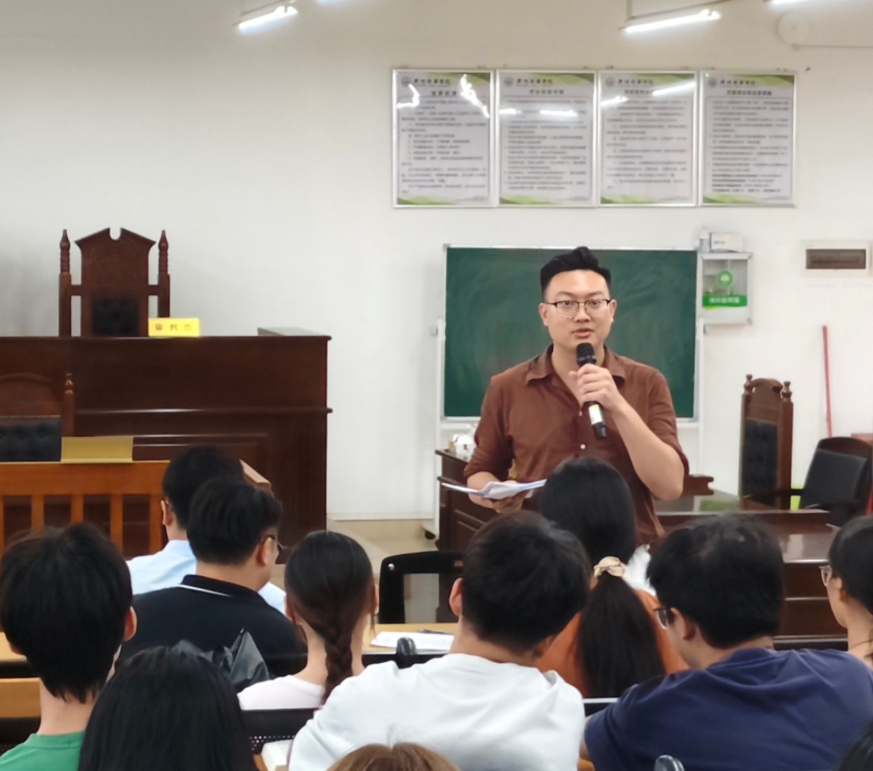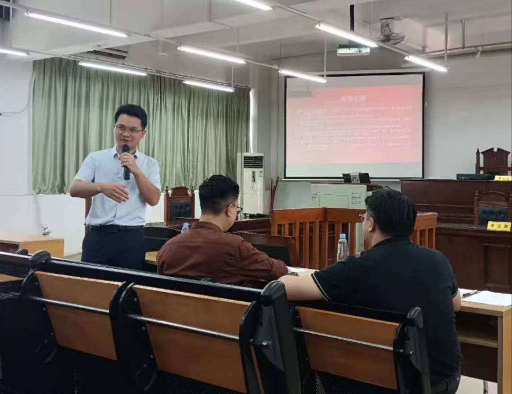 2025年6月12日,太阳成tyc7111cc专职教师欧俊杰组织24级法学C班在格物楼1A402开展模拟法庭实训活动,本次模拟法庭采用“双师协同指导”的教学方式,由“理论教师”和“实务导师”携手授课,共同指导员工如何依托案件事实、运用诉讼程序来开展刑事诉讼实践。受邀参加本次“双师协同”模拟法庭的嘉宾有广东广信君达律师事务所官招阳律师、广东检浩律师事务所梁家熙律师、国信信扬律师事务所陈稔程律师、太阳成tyc7111cc专职教师许文成老师、饶宇星老师。公司专职教师欧俊杰老师组织并主持本次活动。